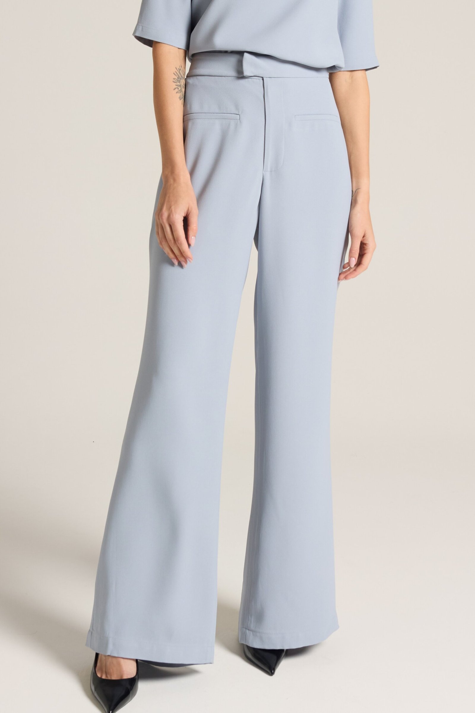 Calça reta alfaiataria em crepe patou com bolsos frontais.