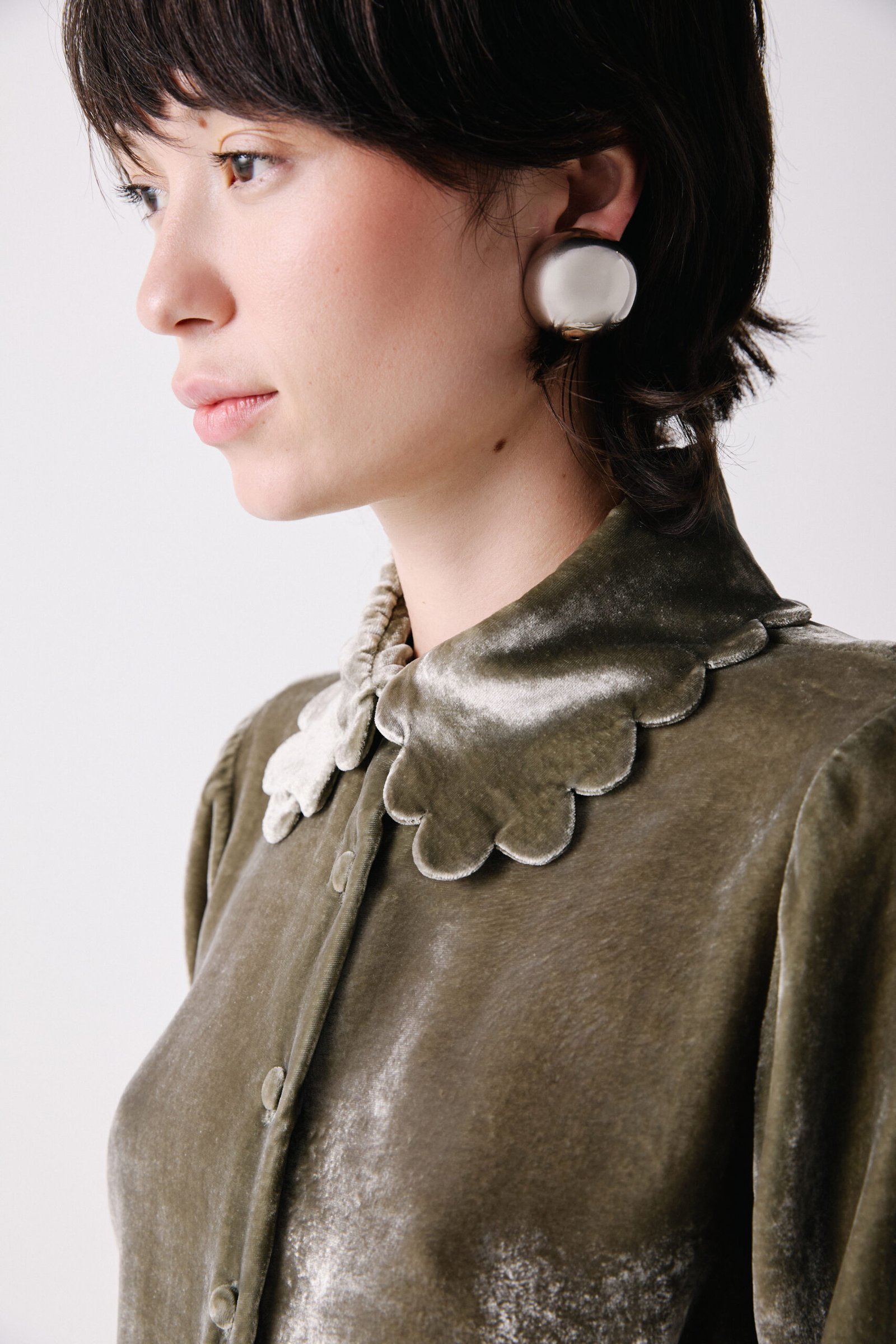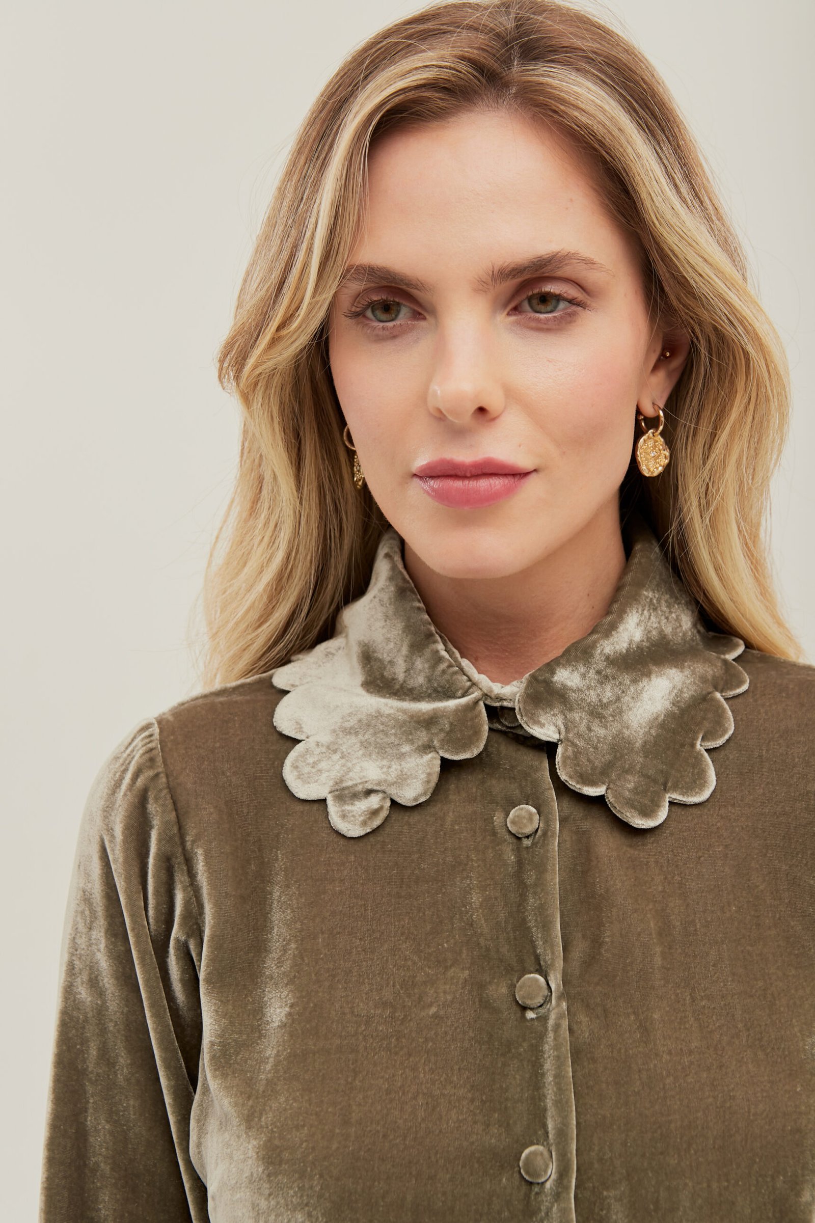 Camisa clássica Luisa Werner em veludo de seda com botões forrados e aplicados à mão.