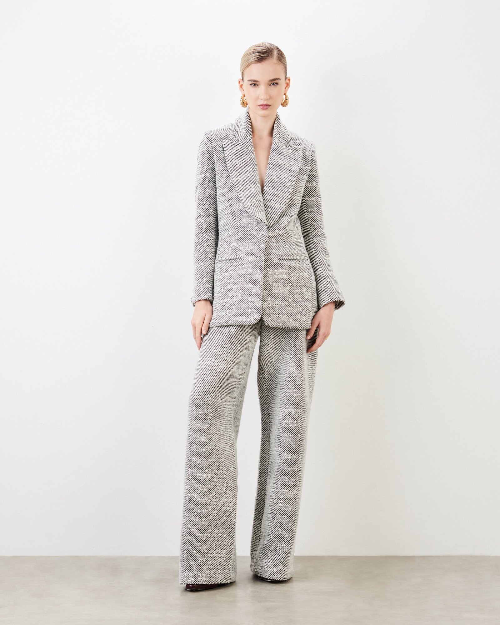 Maxi Blazer lã chevron com botão forrado e meio forro.