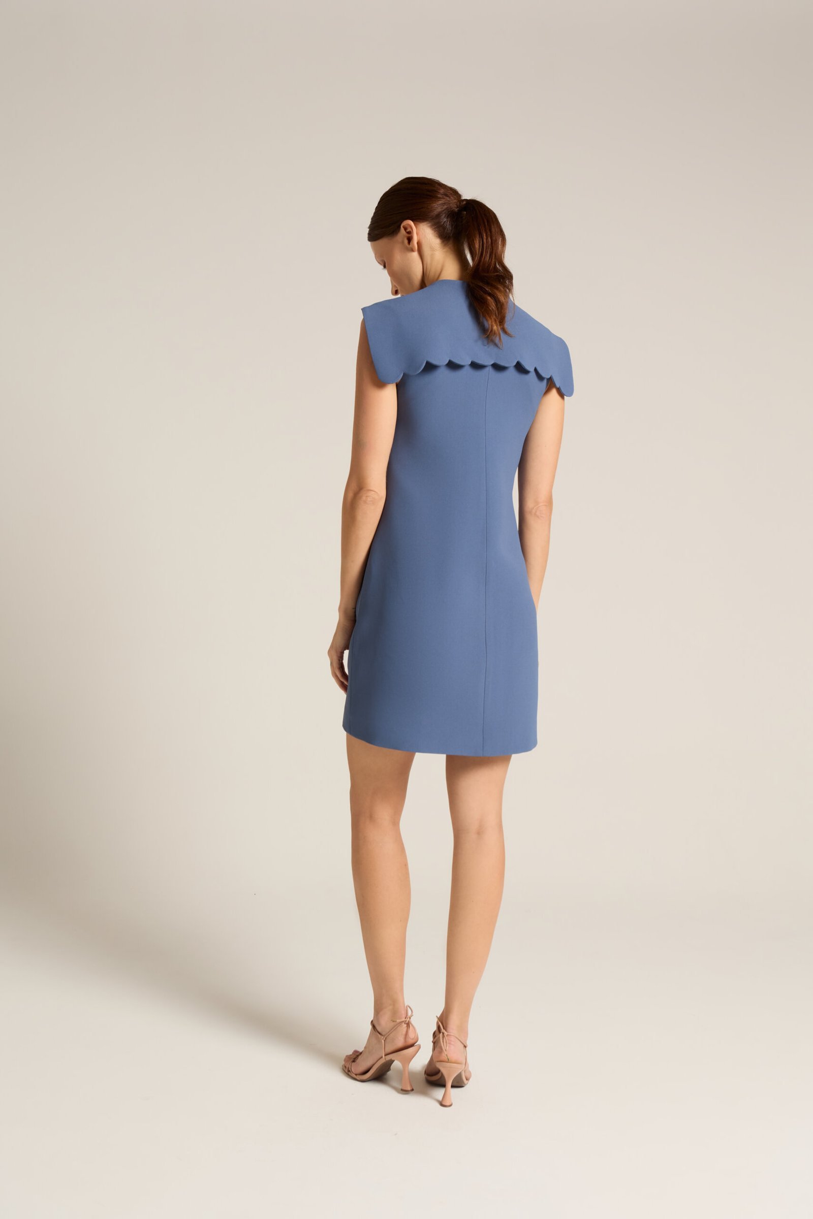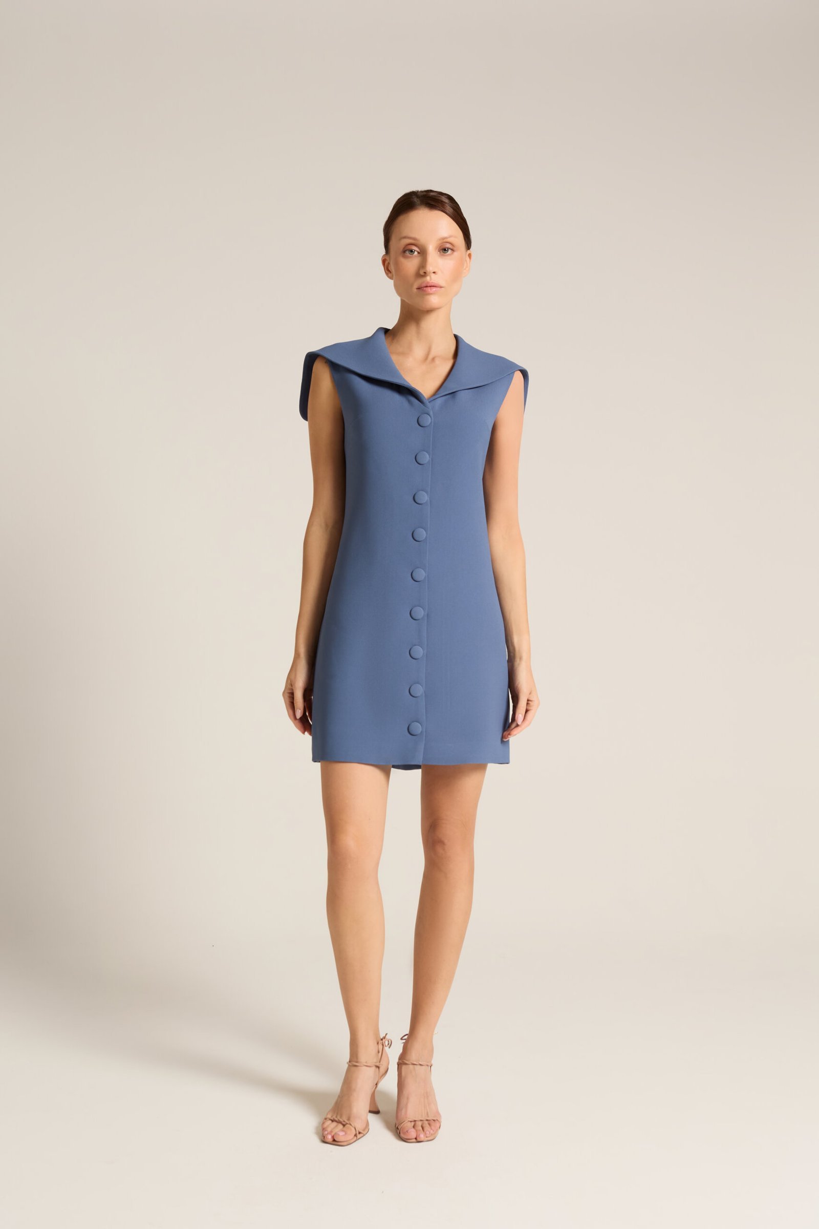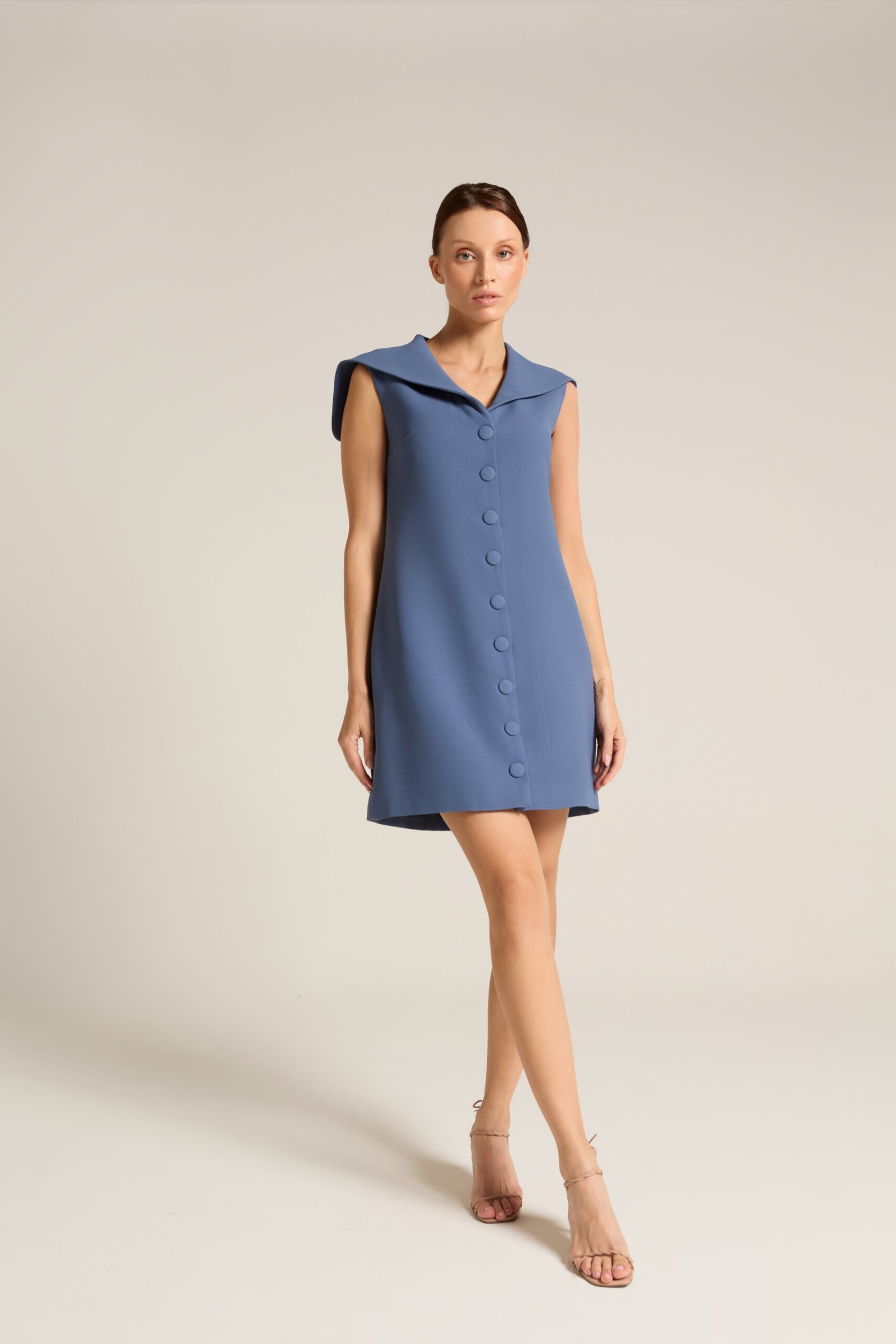 Vestido alfaiataria gola marinheiro em ondinhas com botões forrados.